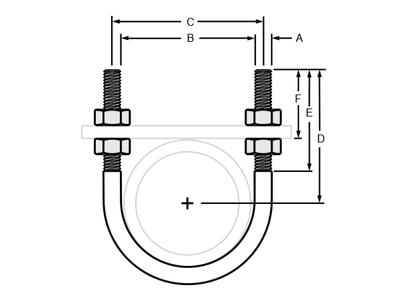 GUB150: 2" (B) x 2-3/8" (C) x 3" (D) x 2-1/2" (E) x 2-1/16" (F)